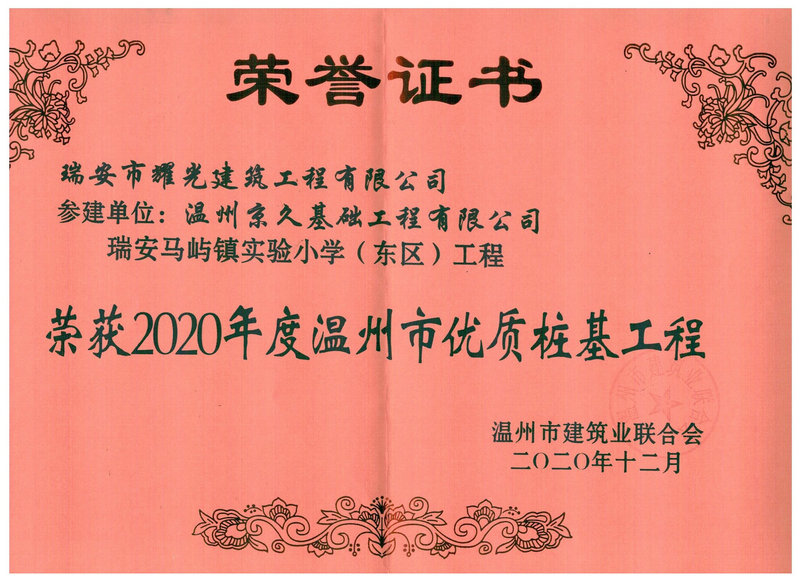 2020年度溫州市優質樁基工程-瑞安馬嶼實驗小學項目