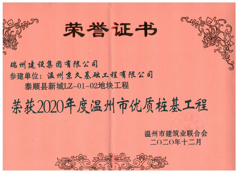 2020年度温州市优质桩基工程-温州金融集聚区危旧房改造项目...